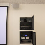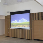 I salen er projektoren, af kosmetiske hensyn, placeret bagerst i lokalet og billedet projiceres på et motorlærred med sort afmaskning (for at hæve den oplevede kontrast).