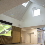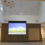 Det samme gør sig gældende i de 2 gymnastiksale som huset også rummer. Her er der mulighed for, at parre sin telefon via Bluetooth eller blot afspille via AUX-kablet og så efterfølgende styre lyden på et enkelt betjeningspanel.